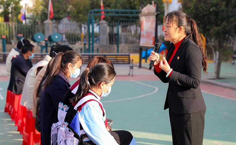 12月14日,云嶺百姓宣講團到云南省麗江市玉龍縣黃山街道開展黨的二十大精神宣講。這是宣講團成員楊麗梅在宣講。新華社發(fā)(李佳健 攝)