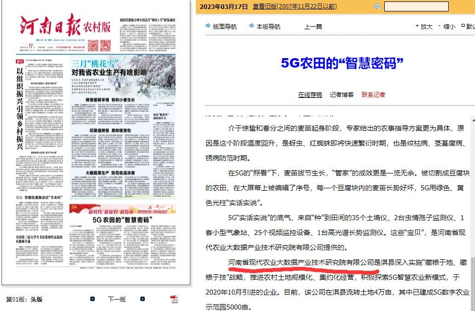 河南省現(xiàn)代農(nóng)業(yè)大數(shù)據(jù)產(chǎn)業(yè)技術(shù)研究院有限公司被人民日報等媒體報道