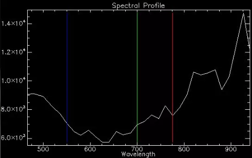 影像中不同地物的光譜特征曲線