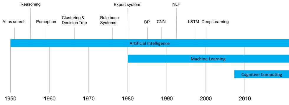1950 年代初期,人工智能聚焦在所謂的強(qiáng)人工智能,希望機(jī)器可以像人一樣完成任何智力任務(wù)。強(qiáng)人工智能的發(fā)展止步不前,導(dǎo)致了弱人工智能的出現(xiàn),即把人工智能技術(shù)應(yīng)用于更窄領(lǐng)域的問(wèn)題。1980 年代之前,人工智能的研究一直被這兩種范式分割著,兩營(yíng)相對(duì)。但是,1980 年左右,機(jī)器學(xué)習(xí)開(kāi)始成為主流,它的目的是讓計(jì)算機(jī)具備學(xué)習(xí)和構(gòu)建模型的能力,從而它們可在特定領(lǐng)域做出預(yù)測(cè)等行為。