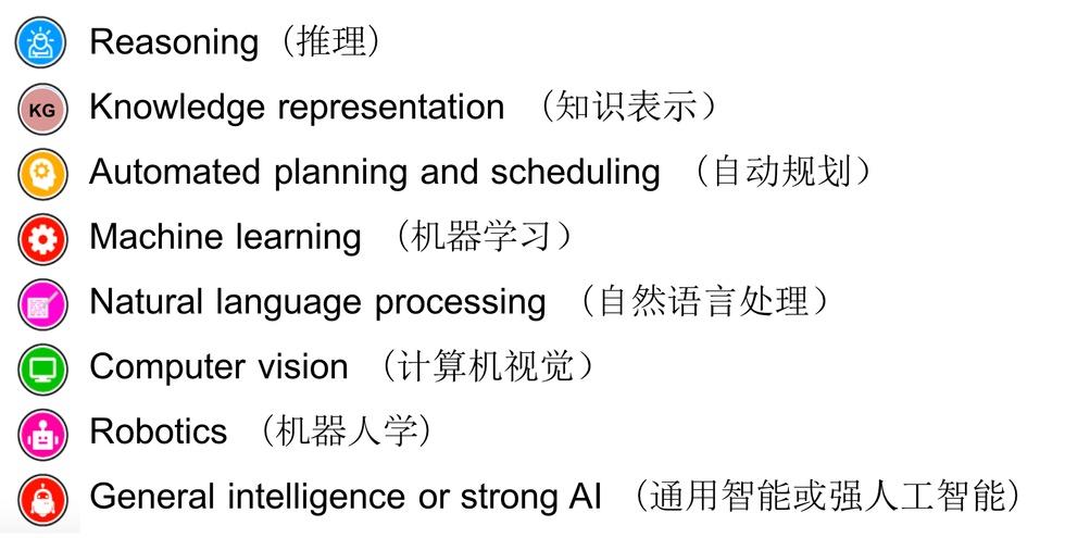 人工智能的目標(biāo)包括:推理、知識(shí)表示、自動(dòng)規(guī)劃、機(jī)器學(xué)習(xí)、自然語(yǔ)言理解、計(jì)算機(jī)視覺(jué)、機(jī)器人學(xué)和強(qiáng)人工智能八個(gè)方面。知識(shí)表示和推理包括:命題演算和歸結(jié),謂詞演算和歸結(jié),可以進(jìn)行一些公式或定理的推導(dǎo)。自動(dòng)規(guī)劃包括機(jī)器人的計(jì)劃、動(dòng)作和學(xué)習(xí),狀態(tài)空間搜索,敵對(duì)搜索,規(guī)劃等內(nèi)容。機(jī)器學(xué)習(xí)這一研究領(lǐng)域是由AI的一個(gè)子目標(biāo)發(fā)展而來(lái),用來(lái)幫助機(jī)器和軟件進(jìn)行自我學(xué)習(xí)來(lái)解決遇到的問(wèn)題。自然語(yǔ)言處理是另一個(gè)由AI的一個(gè)子目標(biāo)發(fā)展而來(lái)的研究領(lǐng)域,用來(lái)幫助機(jī)器與真人進(jìn)行溝通交流。計(jì)算機(jī)視覺(jué)是由AI的目標(biāo)而興起的一個(gè)領(lǐng)域,用來(lái)辨認(rèn)和識(shí)別機(jī)器所能看到的物體。機(jī)器人學(xué)也是脫胎于AI的目標(biāo),用來(lái)給一個(gè)機(jī)器賦予實(shí)際的形態(tài)以完成實(shí)際的動(dòng)作。