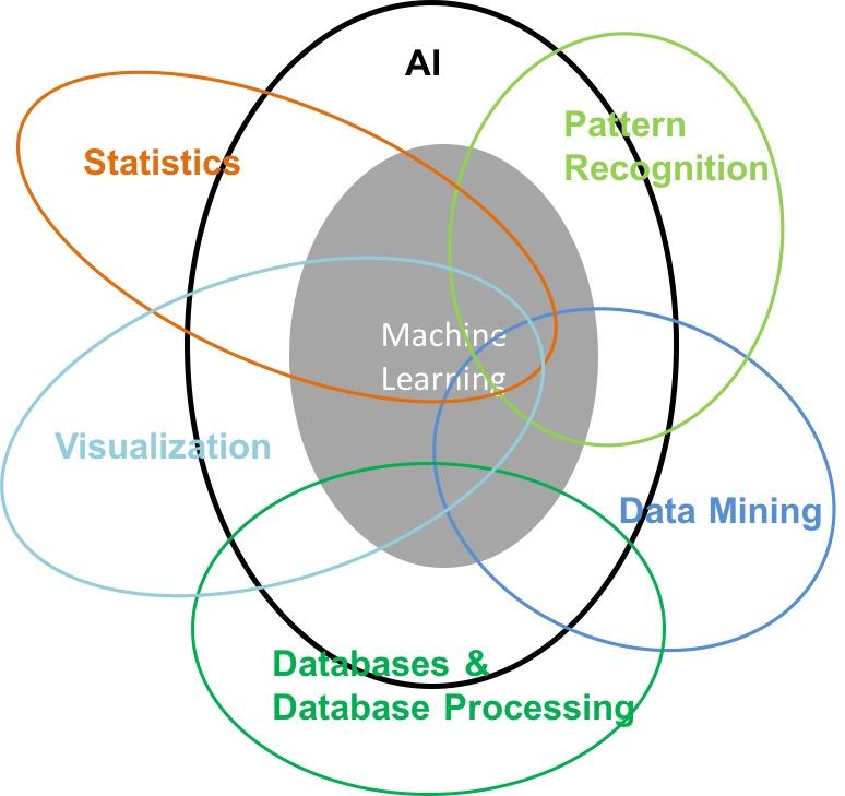 人工智能、機(jī)器學(xué)習(xí)、數(shù)據(jù)挖掘這些非常相關(guān)的術(shù)語(yǔ)或知識(shí)我們經(jīng)??吹剑惨?jiàn)到很多關(guān)于三者關(guān)系的文章和討論。一般來(lái)說(shuō),人工智能是一個(gè)很大的研究領(lǐng)域;機(jī)器學(xué)習(xí)是人工智能的一個(gè)目標(biāo),提供很多算法;而數(shù)據(jù)挖掘是偏向算法應(yīng)用的部分。三者相輔相成,另外也需要其他領(lǐng)域的知識(shí)支持。具體關(guān)系請(qǐng)參考下圖。