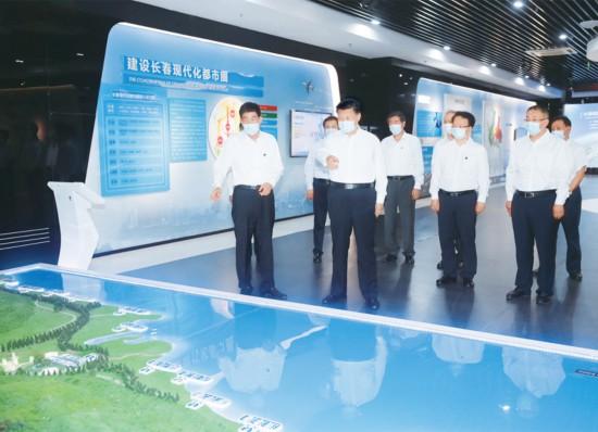 2020年7月22日至24日,中共中央總書(shū)記、國(guó)家主席、中央軍委主席習(xí)近平在吉林省考察。這是7月23日下午,習(xí)近平考察長(zhǎng)春新區(qū)規(guī)劃展覽館,了解新區(qū)規(guī)劃建設(shè)情況。 新華社記者 王曄/攝