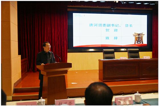 簽約儀式上,院對(duì)外合作處處長(zhǎng)沈慶兵、公司董事長(zhǎng)趙蘭普、唐河縣縣長(zhǎng)賀迎分別致辭,并觀看了唐河縣情宣傳片。唐河縣人大常委會(huì)副主任狄付長(zhǎng)代表縣委、縣政府與公司黨總支書記莊春生簽訂了《合作協(xié)議》。